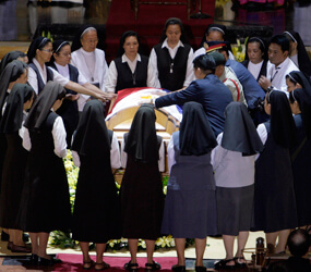 Aquino, 76, died Aug. 1 after a battle with colon cancer. Tens of thousands of Filipinos lined the streets Aug. 3 as her coffin made its way from San Juan City to Manila’s cathedral for a wake and an Aug. 5 funeral.
