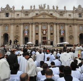 The pope invoked the help of the two new papal saints for the synods’ success, and he prayed, “May both of them teach us not to be scandalized by the wounds of Christ and to enter ever more deeply into the mystery of divine mercy, which always hopes and always forgives, because it always loves.”