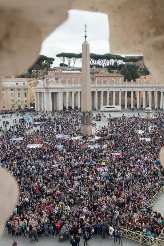 “Let us continue our Lenten journey with joy. Let us give space to prayer and to the word of God, which the liturgy abundantly proposes to us in these days,” the pope said. “Because only by remaining with him will we see his glory.”
