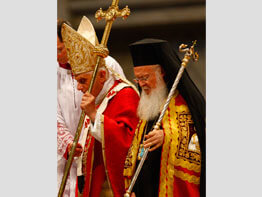 Seated near Patriarch Bartholomew, the pope said in a homily that the Pauline year should send a strong signal of Christian unity. He warmly greeted the other Christian representatives, including many who had come from areas where St. Paul evangelized – in the Holy Land, Syria, Greece, Cyprus and Asia Minor.