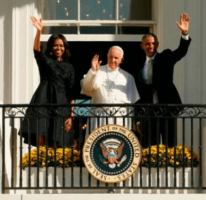 Obama told him, “Our backyard is not typically this crowded,” but the attendance on a bright, sunny morning was a reflection of the devotion of U.S. Catholics “and the way your message of love and hope has inspired so many people, across our nation and around the world.”