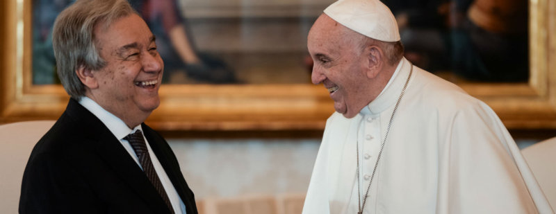 Guterres, for his part, thanked Pope Francis for being “a messenger for hope and humanity — for reducing human suffering and promoting human dignity.”