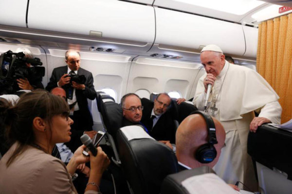 “What do you say to these leaders who hold responsibility for the future of humanity,” the pope was asked, during a Q-and-A with journalists on the flight to Rome April 29 after a 27-hour trip to Cairo.