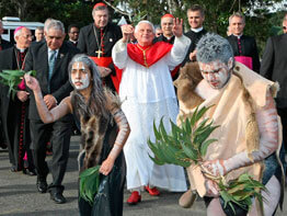 At Rose Bay, Aboriginal elders greeted the pope, gave him gifts and, dancing, led him to the water’s edge.
