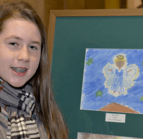 Top honors this year went to a student from Bridgeport, Conn., seventh-grader Alison Fallon, for her drawing of a Christmas angel. She and her family attended the Dec. 7 Mass in Washington.