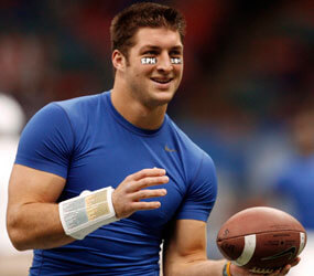 Tebow, who was home-schooled until college, is known for outwardly expressing his Christian faith. He puts references to Scripture passages on his eye black, patches football players wear under their eyes to prevent glare.