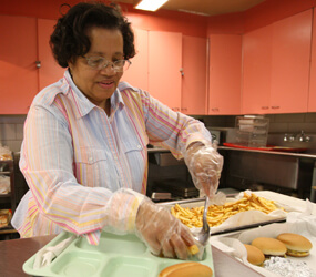 Six years later, “Miss Terry” is a Wednesday mainstay at the small school on Liberty Road. She volunteers in the cafeteria – helping cook meals, fill ketchup containers, prepare trays, serve food, assist students with their lunches and clean up when everyone is finished.