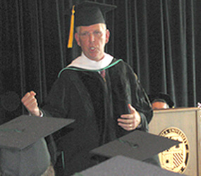 It certainly didn’t include having an NFL coach delivering a commencement address that bordered on pre-game speech.