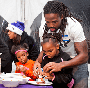 REISTERSTOWN – Baltimore Ravens wide receiver Torrey Smith was joined by fellow players Ed Reed and Tyrod Taylor Dec. 14 as Smith threw a Christmas party for residents of Sarah’s Hope at Hannah More, a St. Vincent de Paul of Baltimore program that serves homeless women and children in Baltimore County.