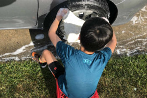 The other day, though, they helped wash one of our cars. I’m not sure that counts as a chore because everyone (except me) was excited to help. I was just excited to take pictures of the car washers. Come to think of it, that’s probably not considered a chore either.