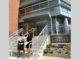 When Mr. McGinty arrived at the library in 2000, there were more than 600 individual tables, creating an isolated feeling among students. Now, 800 large tables can hold up to eight people in an effort to foster community interaction and learning. Everywhere a student turns, wireless access is available. A glass entryway and lobby has removed any claustrophobic elements, while new lights and carpeting have created a more eye-popping experience.