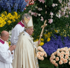 However, the pope added, in the silence of death, Jesus’ heartbeat resounds and his resurrection comes as a gift and as “a transforming force” to a humanity broken by greed and war.