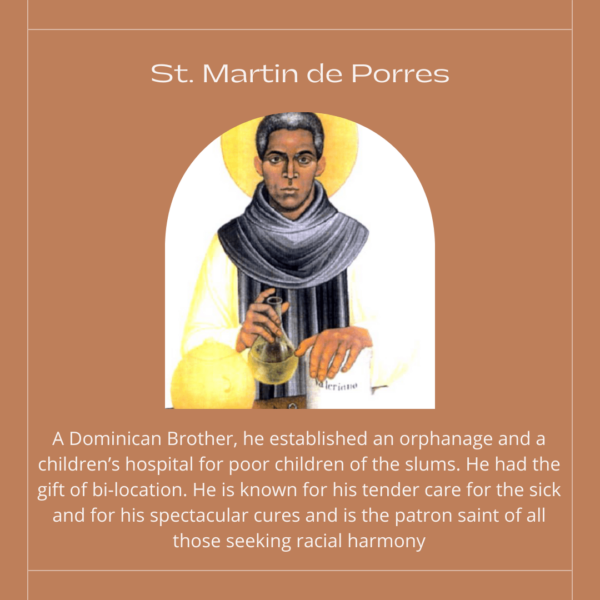 Black Catholic History Month was established in 1990 through the advocacy of the National Black Catholic Clergy Caucus. During the same year, the first celebration of Black Catholic History Month began in November in various cities in the United States with the celebration of St. Martin de Porres’ Feast Day. On November 3rd of that year, a liturgy celebrated the 150th anniversary of St. Martin’s transition to eternal life.