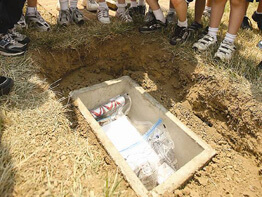 A day before, time was buried in a capsule on school property. Students selected special items for a future generation to discover: uniforms, rosaries, May crowning mementos and a school directory, among other artifacts, were buried next to the flag pole near the school’s entrance.