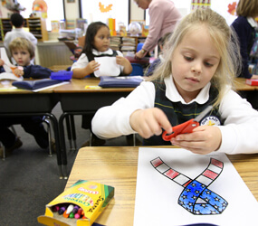 Middle school students from St. Katharine School in Baltimore watched, with parent permission, segments from the HBO World War II series, Band of Brothers. They also wrote letters of thanks to those receiving care at a local veteran affairs hospital. Primary grades wrote letters to men and women in the military by using a Web site called, Let’s Say Thanks.