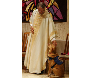 JEFFERSON CITY, Mo. – Father John Groner’s service dog, Lilly, accompanies him everywhere.