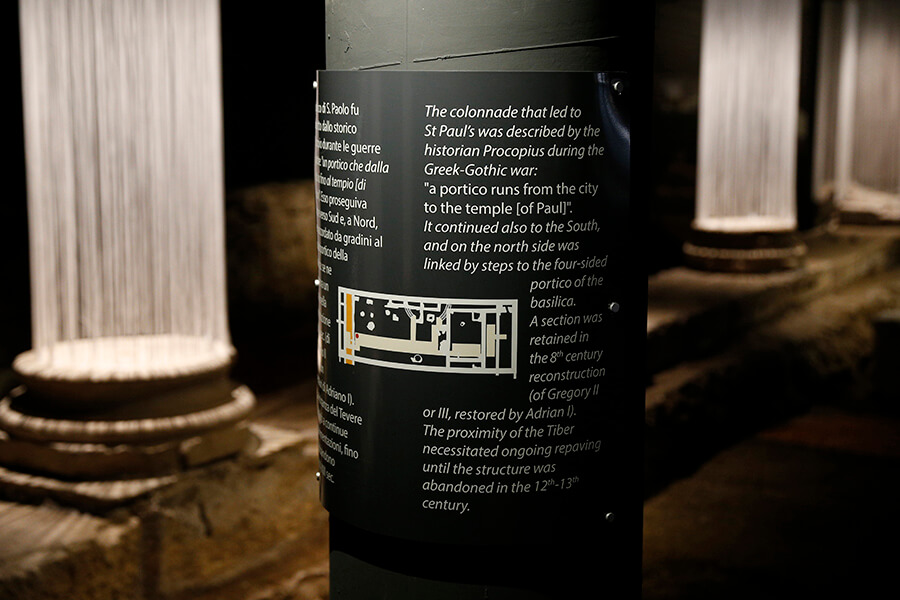They found evidence of what is most likely one of a number of houses for the poor that Pope Symmachus had built near the basilicas of St. Paul and St. Peter and the church of St. Lawrence in the sixth century as well as the marble bases of what had been columns supporting almost 2.5 miles of paved and covered walkways and porticoes to provide shade and rain protection to the throngs of pilgrims visiting the tomb of St. Paul.