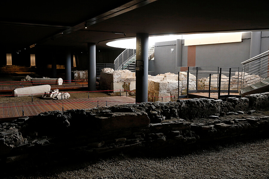 The same kind of contrasting effect and “a clear sense of space” were made by covering the ground around the ruins with different colored pebbles, said Paolo Monesi, the architect.