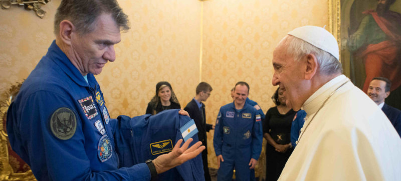 The gifts were presented to the pope June 8 by Italian astronaut Paolo Nespoli and four other astronauts, who returned from the International Space Station in two groups, one in December and one in February.