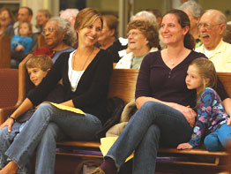 The pastor or a parishioner will send a personal note to visitors who sign the church’s guest books to thank them for coming. When the church gets new parishioners to join the list of 2,400 registered families, Father Wible and ministry directors will meet them at the parish office to say, “How can we be of service?”