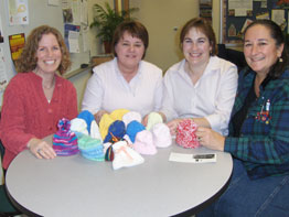 Second-grade teacher Carol O’Neel, fourth-grade teacher Geri Gramil, and computer teacher Lisa Giacco all responded, knitting hats for infants in need. The teachers received some extra help from Ms. O’Neel’s daughters and Elizabeth Bracey, whose daughter is a fourth-grader at the school.