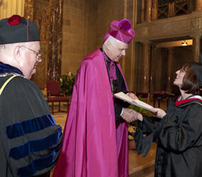 Recipients of the Ecumenical Institute’s master’s in theology from the archdiocese include Leslie Gayle Davis of Our Lady of Grace in Parkton, Sandra Elizabeth Geertsen of the Church of the Nativity in Timonium, Jan Marie Menefee McDonnell of Sacred Heart in Glyndon, Deacon William J. Pearson of St. Vincent de Paul in Baltimore, and Julie Clare St. Croix of St. John the Evangelist in Frederick. The master’s in church ministries was awarded to Susan C. Crowley of St. John in Westminster and Mary Ellen Rector Fise of the Basilica of the National Shrine of the Assumption of the Blessed Virgin Mary in Baltimore.