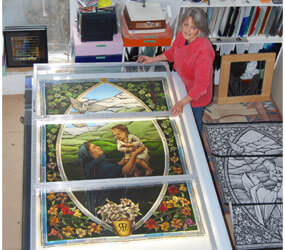 Stained-glass artist Deborah Coombs of Readsboro has created four stained-glass windows for the chapel at St. Henry Church in Nashville, Tenn. Each one is 54 inches by 60 inches and each depicts the life of Jesus and Mary as presented in one of the mysteries of the rosary – joyful, sorrowful, glorious and luminous.