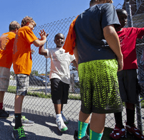 Summer Madness’ service component is 13-year-old Casey Baum’s favorite part, he said, before jumping into a vigorous kickball game with kids from Glen Burnie’s Salvation Army Boys and Girls Club.