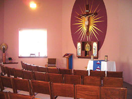 To better accommodate the crowds, St. Joseph reconfigured its chapel on Dec. 2. Nearly 20 seats were added when the chapel’s middle aisle was eliminated and the seats were rearranged in a semi-circle. A smaller altar and ambo were also introduced to allow more space in the sanctuary.