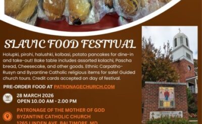 Patronage of the Mother of God Byzantine Catholic Church will host a Slavic Food Festival March 28, 10 a.m.- 2 p.m. Favorite foods will be available from the Carpathian Mountains including holupki (stuffed cabbage), pirohi (pierogies), halushki (noodles), kielbasi subs, and our “World-Famous” potato pancakes. We’ll also be selling Pascha/Easter foods like hrudtka (cheese), Pascha...Read More
