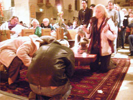 One by one, worshippers dropped to their knees and rested their foreheads on the sacred wooden image – symbolically entrusting to Christ all their burdens and the burdens of the world.