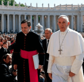 The pope recalled a conversation he had with a young woman who worked 11 hours a day to earn 650 euro a month under the table, saying that such exploitation “today is true slavery.”