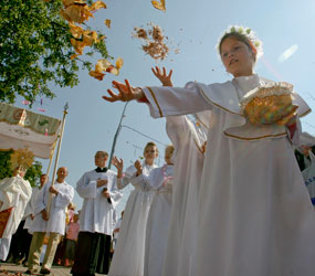 The sacrament of communion underscores the social commitment inherent in the church, Pope Benedict said, because whoever recognizes Christ in the host “also sees him in his brother who suffers, who is hungry or thirsty, or who is alone, naked, sick or imprisoned.”