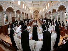 All 228 sisters in the congregation, the highest number in its history, were on hand for the Mass on the feast day of the order’s founder, Mother Ann Marie said. The sisters and a sprinkling of special guests filled the chapel, and the congregation’s choir and orchestra provided the music.