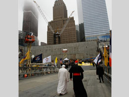 One of his most somber visits was at ground zero, where the pope knelt alone and offered a silent prayer. He also read a prayer aloud with a small group at his side representing survivors, the family members of the dead and representatives of the New York Port Authority, police and fire departments.