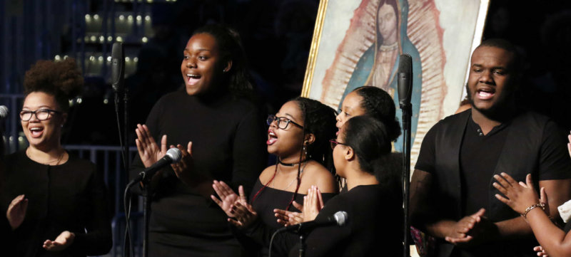 Opening his homily at the Mass, Father Robert Boxie III, the parochial vicar at St. Joseph Parish in Largo, Maryland, said, “To see this arena filled with the Body of Christ, I’m looking out and seeing hope for the future of our church, and hope for the future of our country. It’s an awesome and beautiful sight!”