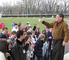 Capuchin Franciscan Father Greg Chervanak spoke at a pre-pilgrimage icebreaker.