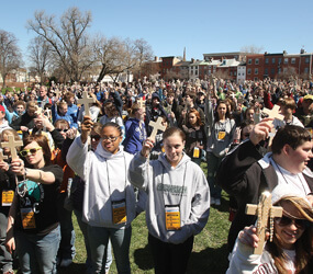 The bright afternoon sun of April 4 reflected off more than 1,200 youthful faces, and a strong wind filled the spaces between them on the lawn of the St. Mary’s Spiritual Center and Historic Site.